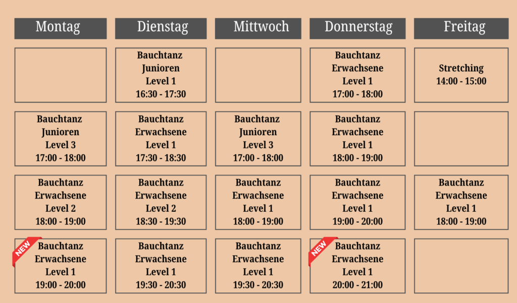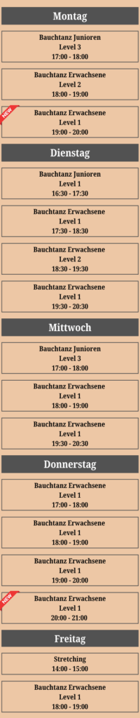 Dieser Kurs ist für alle geeignet, die Bauchtanz von Grund auf lernen möchten. Du brauchst keine Vorkenntnisse! Wir üben einfache Bewegungen, arbeiten an der Haltung und lernen erste kleine Kombinationen. Der Kurs ist perfekt, um den eigenen Körper besser kennenzulernen und Freude an Tanz und Musik zu entdecken.